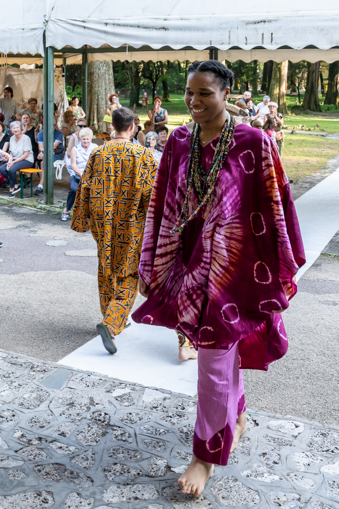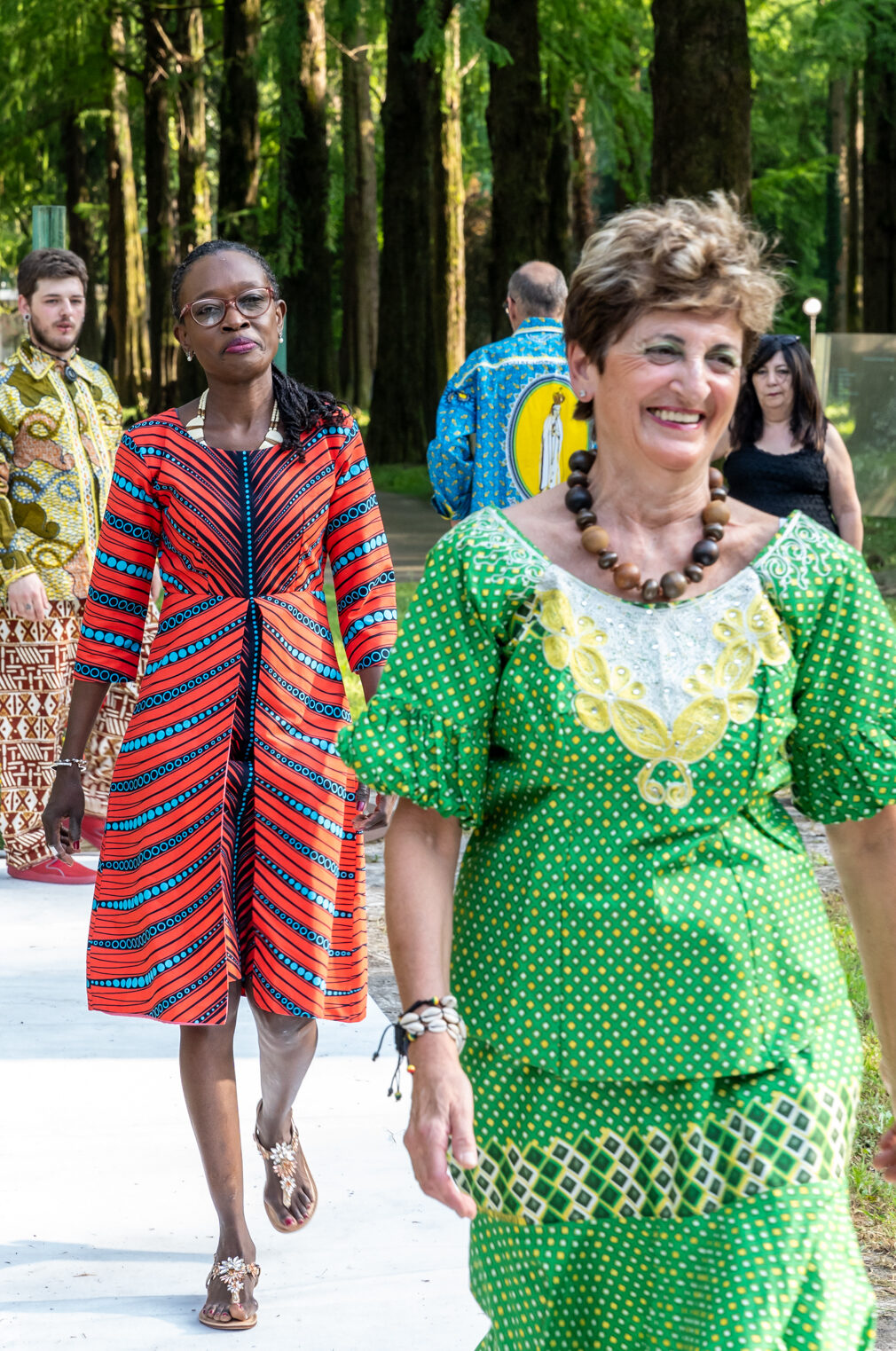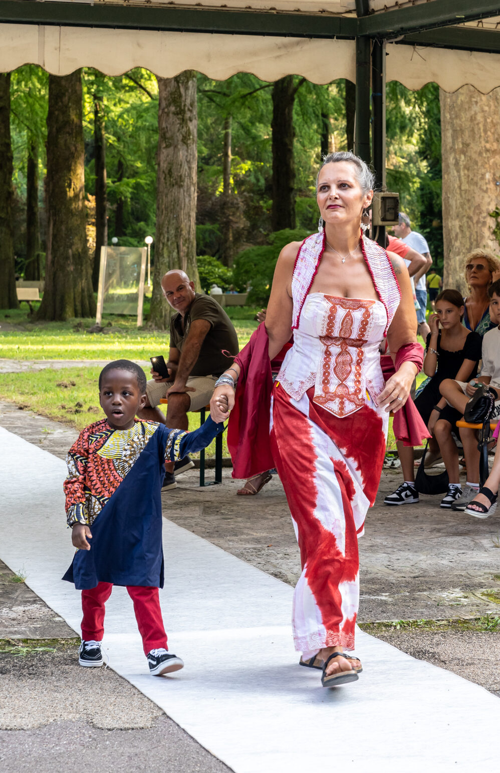 Ringrazio di vero cuore i tanti volontari che hanno portato alle Terme di Boario in una calorosa e coinvolgente passerella di moda multietnica. Un ringraziamento speciale va alle amiche e amici senegalesi che, con le amiche della Valle, hanno indossato per noi capi unici dai colori gioiosi e allegri tipici di una terra ricca e generosa. Nella passerella si sono alternati abiti dalle sgargianti e accese fantasie con i tipici e variopinti Buobou (abiti lunghi generalmente in cotone), per concludere con abiti di raffinata eleganza dai tessuti dorati ai colori accesi.