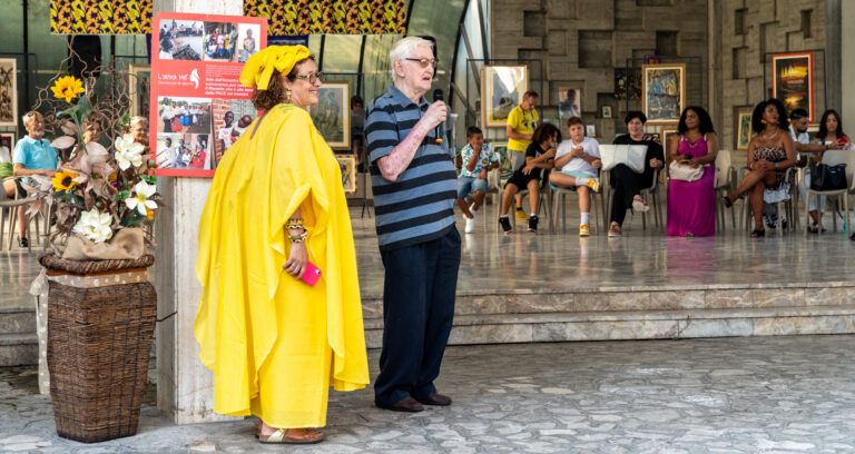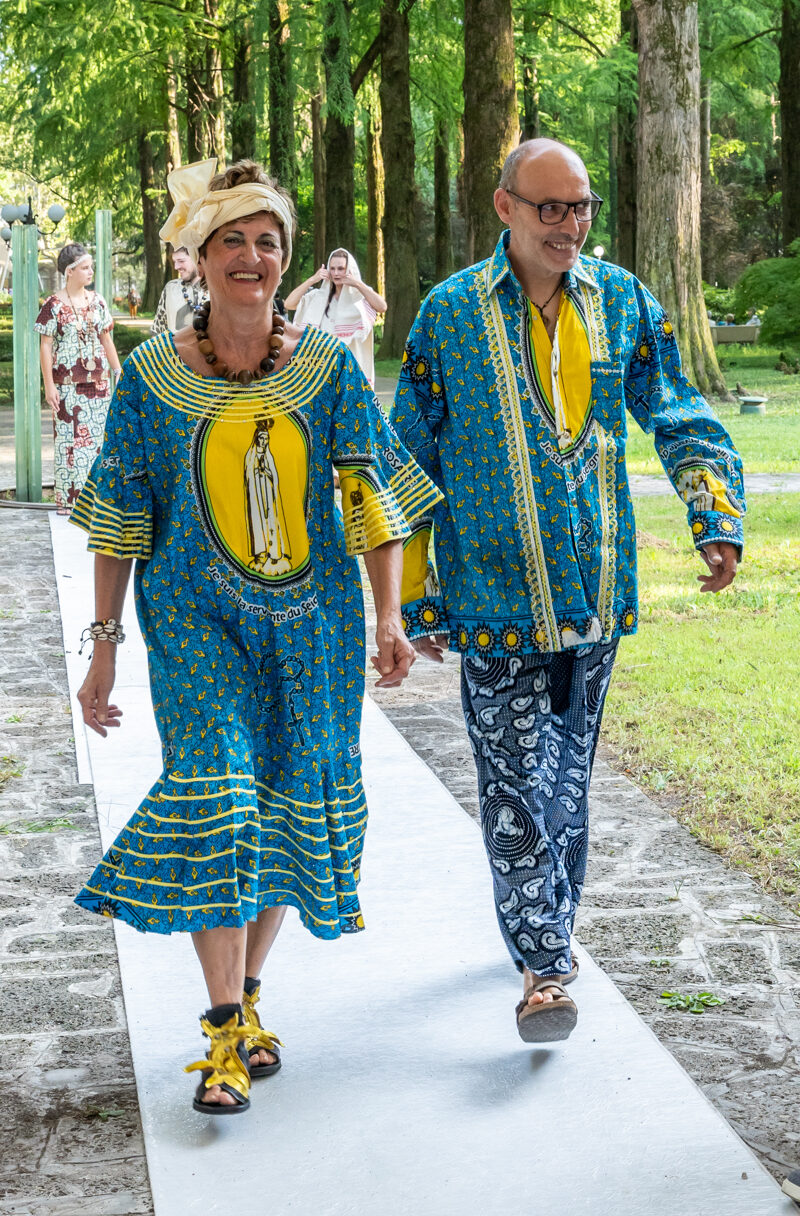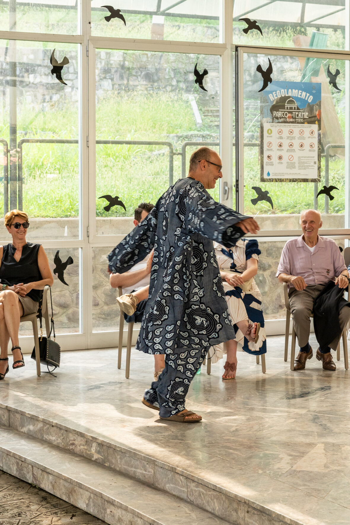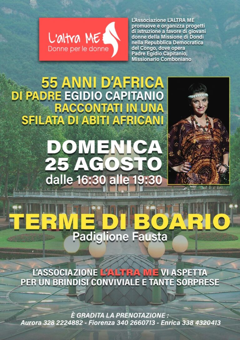 Ringrazio di vero cuore i tanti volontari che hanno portato alle Terme di Boario in una calorosa e coinvolgente passerella di moda multietnica. Un ringraziamento speciale va alle amiche e amici senegalesi che, con le amiche della Valle, hanno indossato per noi capi unici dai colori gioiosi e allegri tipici di una terra ricca e generosa. Nella passerella si sono alternati abiti dalle sgargianti e accese fantasie con i tipici e variopinti Buobou (abiti lunghi generalmente in cotone), per concludere con abiti di raffinata eleganza dai tessuti dorati ai colori accesi.